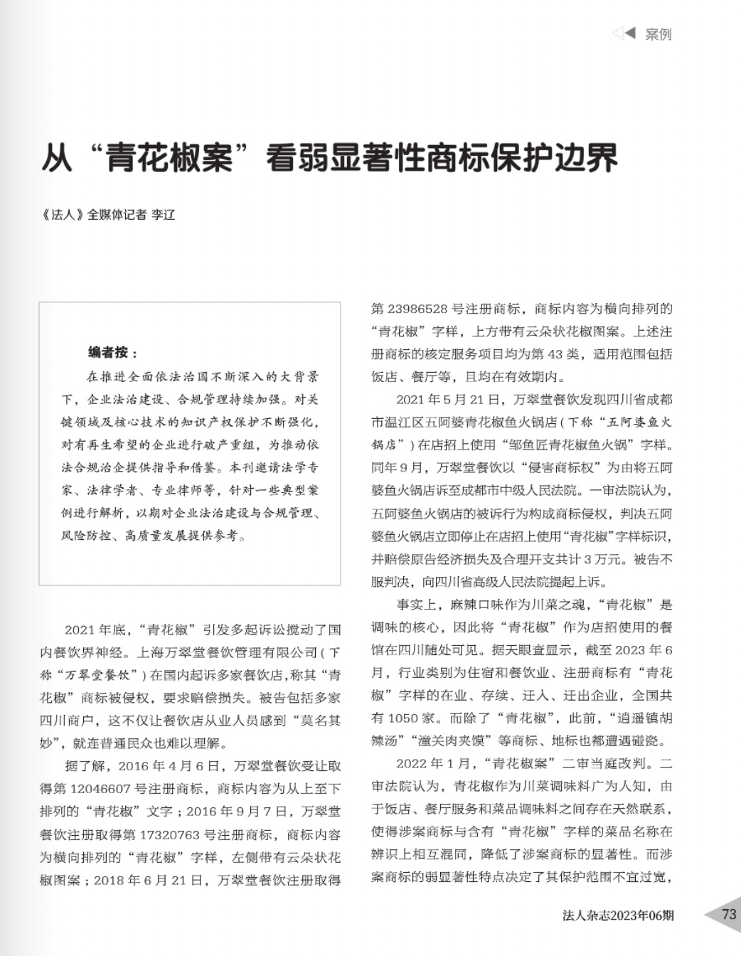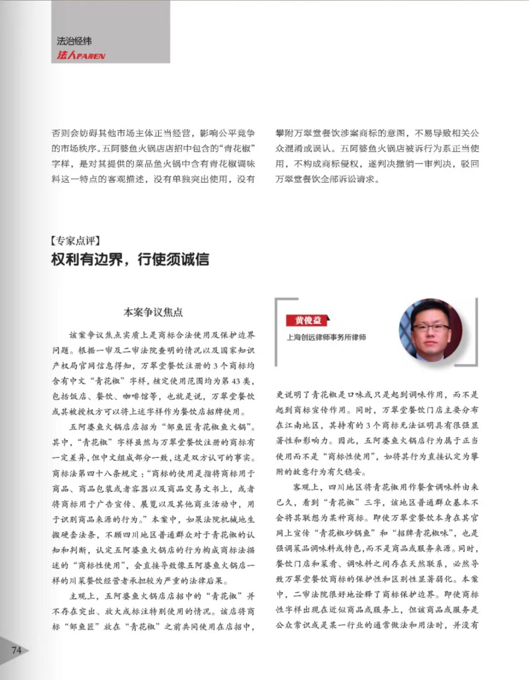 鄂尔多斯辉知简讯 | 辉知队黄俊益律师应“法治日报”旗下杂志邀请,就“青花椒”案发表专家点评