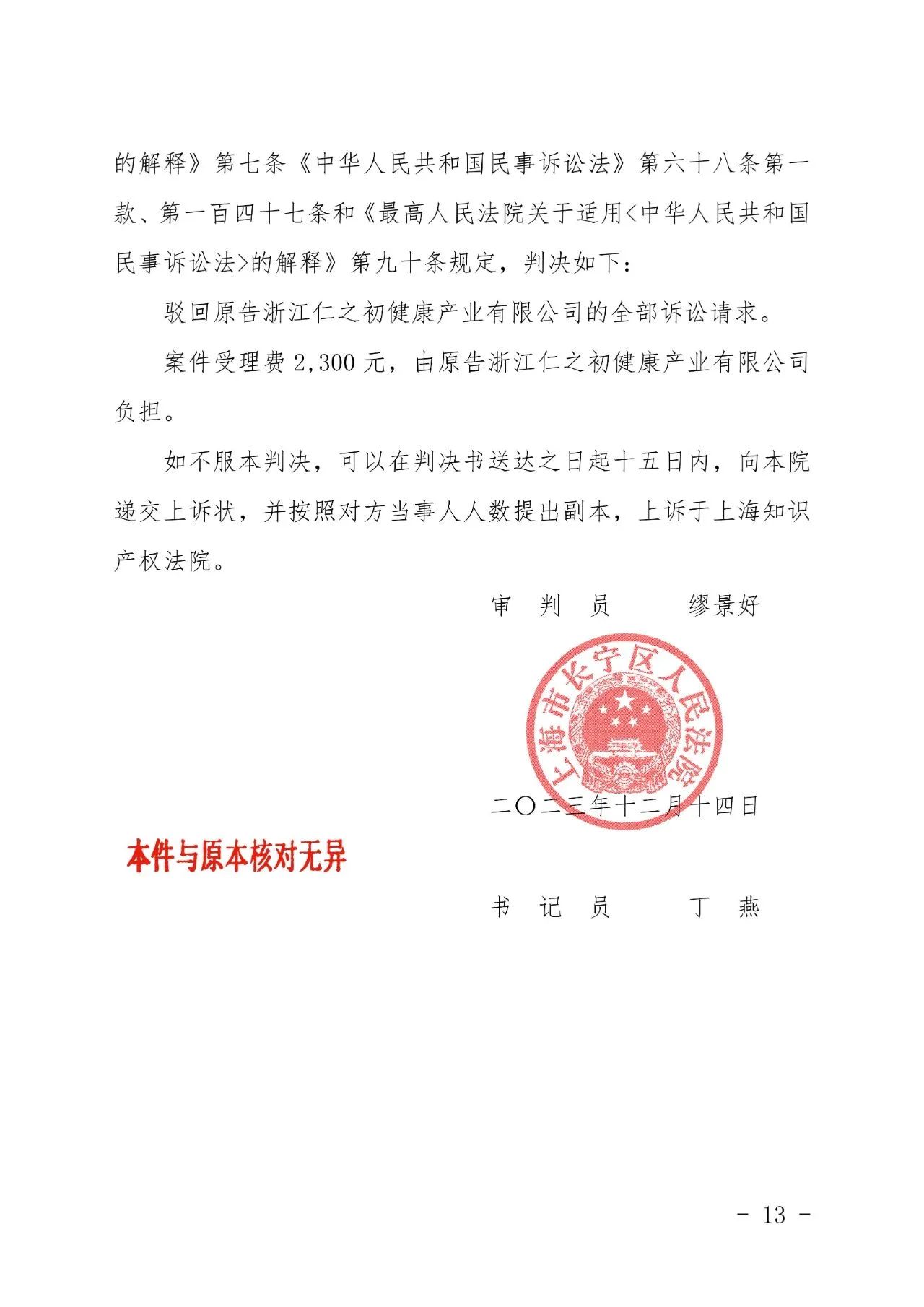 鄂尔多斯辉知胜诉佳讯 | “仁之初健康”著作权及不正当竞争纠纷案,法院:驳回全部诉讼请求!